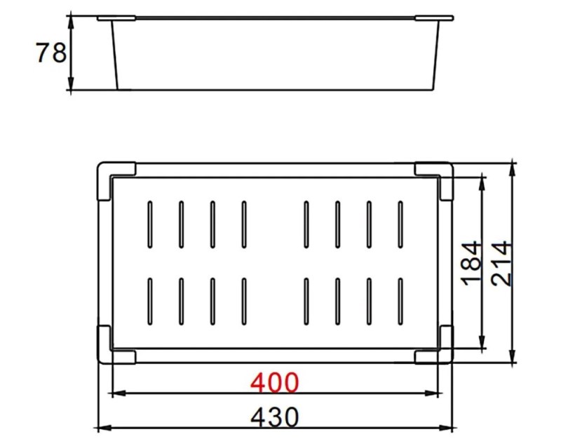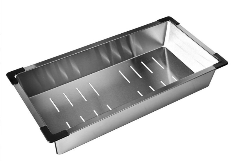 Коландер Gerhans K30340 43x21.4, сатин из нержавеющей стали. Свойства. Коландер Gerhans K30340 43x21.4 см изготовлен из нержавеющей стали высочайшего качества. Бортики из пластика для легкого перемещения коландера и защиты поверхности мойки. Используется как практичный многофункциональный дуршлаг для промывки, обсушивания продуктов, складывания их после нарезания, сливания воды после приготовления блюд. Универсальная модель подходит к мойкам с длиной чаши 40.5-41 см. Производство. Компания Gerhans выпускает сантехнику высокого класса с применением передовых немецких технологий. Заводы расположены в Китае и странах СНГ. Качество. Проверенные материалы и комплектующие люксовых производителей соответствуют мировым стандартам DVGW, NSF, ACS и WARS. Актуальные трендовые решения. Доступное европейское качество. Изображение и цвет на мониторе могут отличаться от оригинала. Комплектность:
