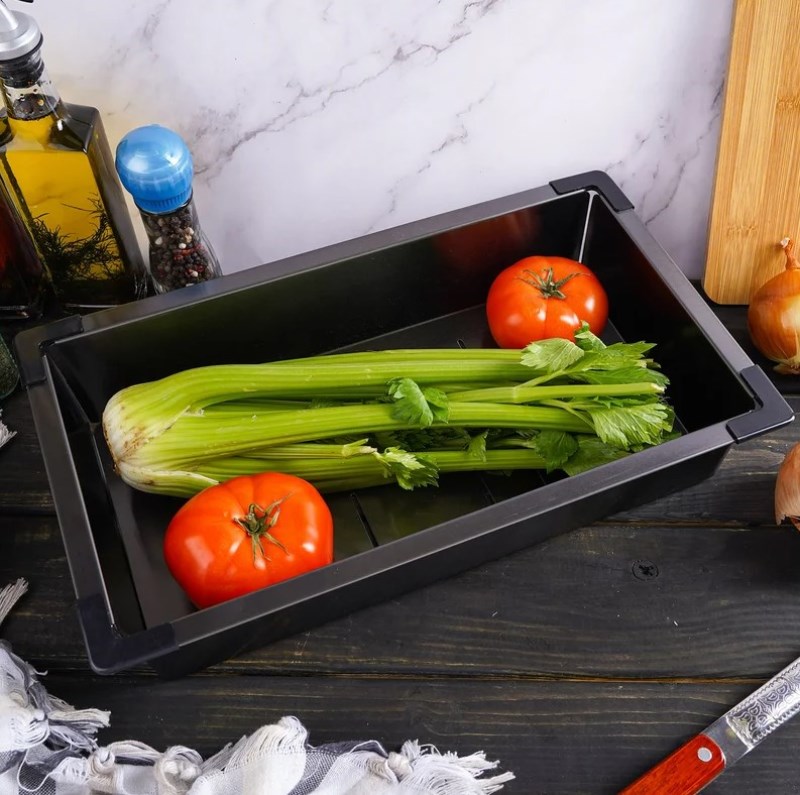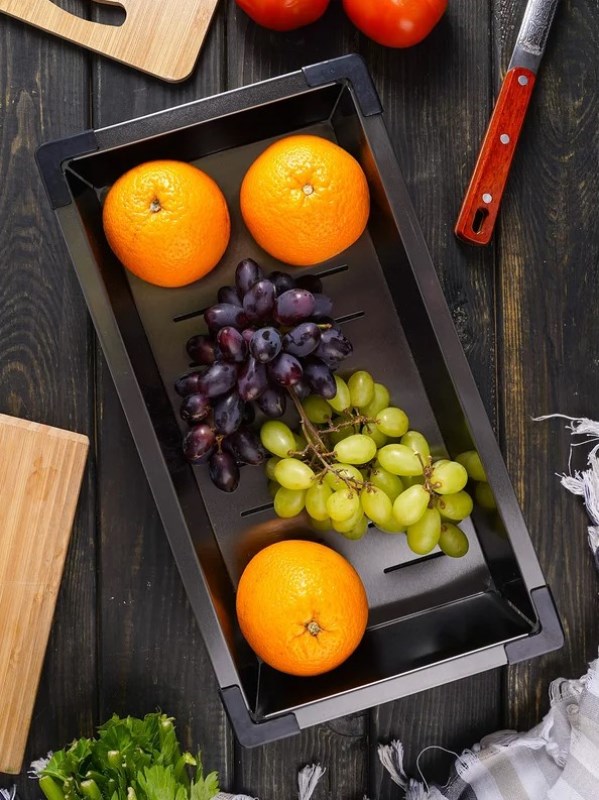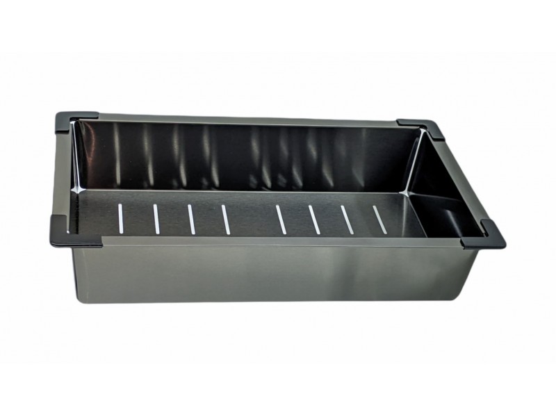 Коландер Gerhans K30340B 43x21.4, графит из нержавеющей стали. Свойства. Коландер Gerhans K30340B 43x21.4 см изготовлен из нержавеющей стали высочайшего качества. Бортики из пластика для легкого перемещения коландера и защиты поверхности мойки. Используется как практичный многофункциональный дуршлаг для промывки, обсушивания продуктов, складывания их после нарезания, сливания воды после приготовления блюд. Универсальная модель подходит к мойкам с длиной чаши 40.5-41 см. Производство. Компания Gerhans выпускает сантехнику высокого класса с применением передовых немецких технологий. Заводы расположены в Китае и странах СНГ. Качество. Проверенные материалы и комплектующие люксовых производителей соответствуют мировым стандартам DVGW, NSF, ACS и WARS. Актуальные трендовые решения. Доступное европейское качество. Изображение и цвет на мониторе могут отличаться от оригинала. Комплектность: