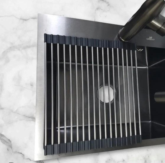 Ролл-мат Gerhans K30335-43 35x43 из нержавеющей стали и силикона с круглыми прутьями. Свойства. Ролл-мат Gerhans K30335-43 35x43 см изготовлен из нержавеющей стали высочайшего качества. Используется в качестве подставки для горячей посуды, сушилки для овощей и фруктов или коврика для разморозки продуктов. Двусторонние силиконовые наконечники защищают поверхность столешницы, крыло мойки. Термостойкий, не подвержен деформации, легко чистится и не оставляет царапин на посуде. Подходит для мытья в посудомоечной машине, использования в микроволновой печи и морозильной камере, сворачивается в рулон для удобного и компактного хранения. Универсальная модель может устанавливаться поверх кухонных моек всех моделей. Ролл-мат выдерживает нагрузку до 10 кг. Производство. Компания Gerhans выпускает сантехнику высокого класса с применением передовых немецких технологий. Заводы расположены в Китае и странах СНГ. Качество. Проверенные материалы и комплектующие люксовых производителей соответствуют мировым стандартам DVGW, NSF, ACS и WARS. Актуальные трендовые решения. Доступное европейское качество. Изображение и цвет на мониторе могут отличаться от оригинала. |