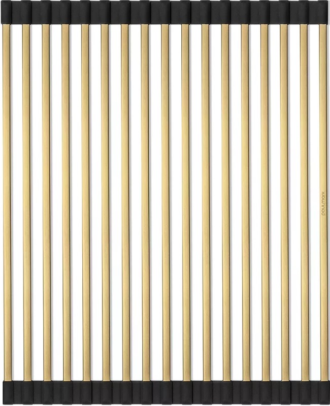 Ролл-мат Paulmark Extra R405-BG 33x40.5, брашированное золото из нержавеющей стали и силикона с квадратными прутьями. Свойства. Ролл-мат Extra R405-BG 33x40.5 см изготовлен из нержавеющей стали высочайшего качества. Используется в качестве подставки для горячей посуды, сушилки для овощей и фруктов или коврика для разморозки продуктов. Двусторонние силиконовые наконечники защищают поверхность столешницы, крыло мойки. Термостойкий, не подвержен деформации, легко чистится и не оставляет царапин на посуде. Подходит для мытья в посудомоечной машине, использования в микроволновой печи и морозильной камере, сворачивается в рулон для удобного и компактного хранения. Брашированное покрытие из нержавеющей стали предотвращает возникновение царапин и вмятин. Подходит к кварцевым мойкам серии PRO от Paulmark, а так же к мойкам с длинной чаши 355-385 мм. Изображение и цвет на мониторе могут отличаться от оригинала. |
