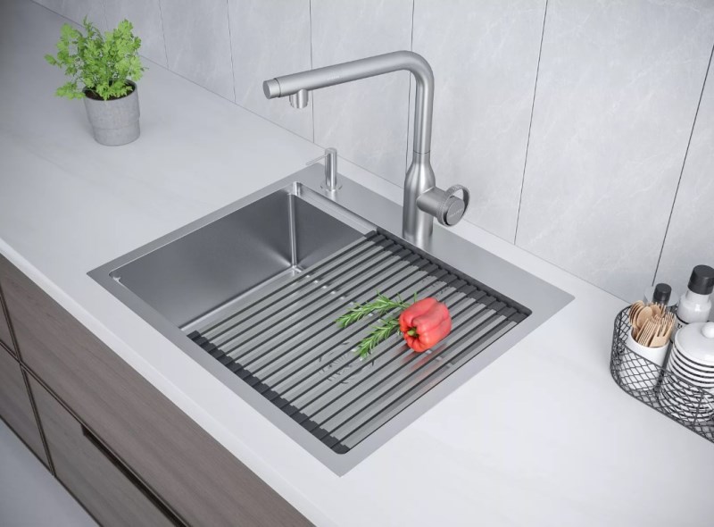 Ролл-мат Paulmark Extra R405-BS 33x40.5, из нержавеющей стали и силикона с квадратными прутьями. Свойства. Ролл-мат Extra R405-BS 33x40.5 см изготовлен из нержавеющей стали высочайшего качества. Используется в качестве подставки для горячей посуды, сушилки для овощей и фруктов или коврика для разморозки продуктов. Двусторонние силиконовые наконечники защищают поверхность столешницы, крыло мойки. Термостойкий, не подвержен деформации, легко чистится и не оставляет царапин на посуде. Подходит для мытья в посудомоечной машине, использования в микроволновой печи и морозильной камере, сворачивается в рулон для удобного и компактного хранения. Брашированное покрытие из нержавеющей стали предотвращает возникновение царапин и вмятин. Подходит к кварцевым мойкам серии PRO от Paulmark, а так же к мойкам с длинной чаши 355-385 мм. Изображение и цвет на мониторе могут отличаться от оригинала. |