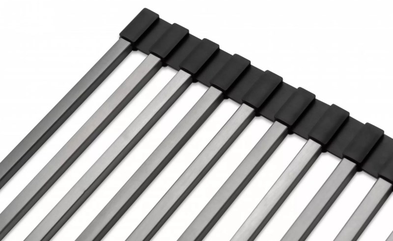 Ролл-мат Paulmark Extra R405-GM 33x40.5, вороненая сталь из нержавеющей стали и силикона с квадратными прутьями. Свойства. Ролл-мат Extra R405-GM 33x40.5 см изготовлен из нержавеющей стали высочайшего качества. Используется в качестве подставки для горячей посуды, сушилки для овощей и фруктов или коврика для разморозки продуктов. Двусторонние силиконовые наконечники защищают поверхность столешницы, крыло мойки. Термостойкий, не подвержен деформации, легко чистится и не оставляет царапин на посуде. Подходит для мытья в посудомоечной машине, использования в микроволновой печи и морозильной камере, сворачивается в рулон для удобного и компактного хранения. Брашированное покрытие из нержавеющей стали предотвращает возникновение царапин и вмятин. Подходит к кварцевым мойкам серии PRO от Paulmark, а так же к мойкам с длинной чаши 355-385 мм. Изображение и цвет на мониторе могут отличаться от оригинала. |