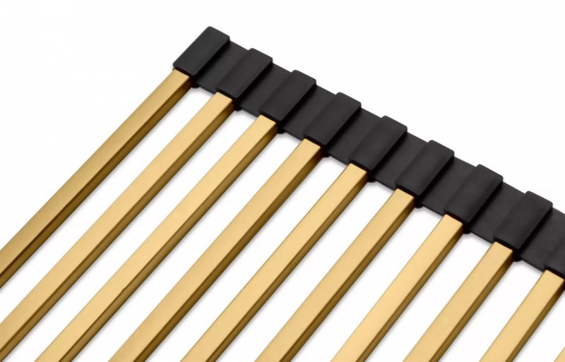 Ролл-мат Paulmark Extra R440-BG 33x44, брашированное золото из нержавеющей стали и силикона с квадратными прутьями. Свойства. Ролл-мат Extra R440-BG 33x44 см изготовлен из нержавеющей стали высочайшего качества. Используется в качестве подставки для горячей посуды, сушилки для овощей и фруктов или коврика для разморозки продуктов. Двусторонние силиконовые наконечники защищают поверхность столешницы, крыло мойки. Термостойкий, не подвержен деформации, легко чистится и не оставляет царапин на посуде. Подходит для мытья в посудомоечной машине, использования в микроволновой печи и морозильной камере, сворачивается в рулон для удобного и компактного хранения. Брашированное покрытие из нержавеющей стали предотвращает возникновение царапин и вмятин. Подходит к мойкам с длинной чаши 390-420 мм. Изображение и цвет на мониторе могут отличаться от оригинала. |