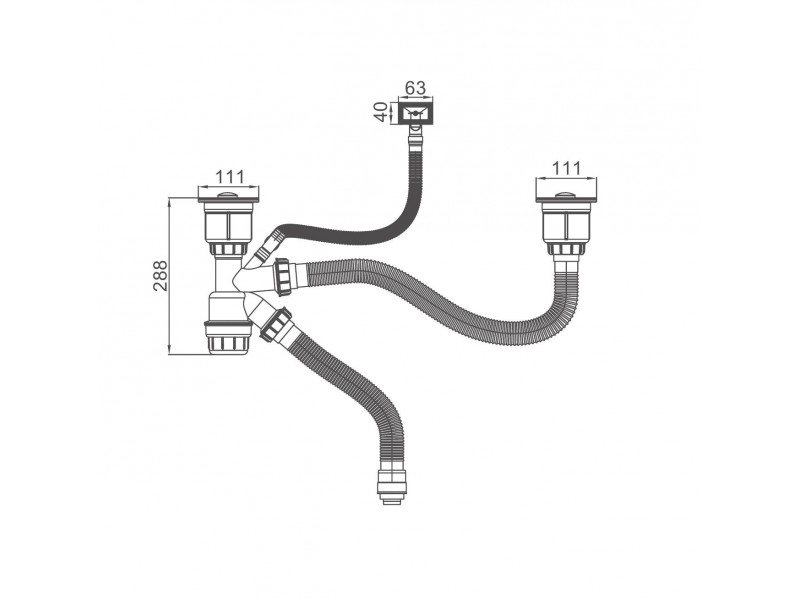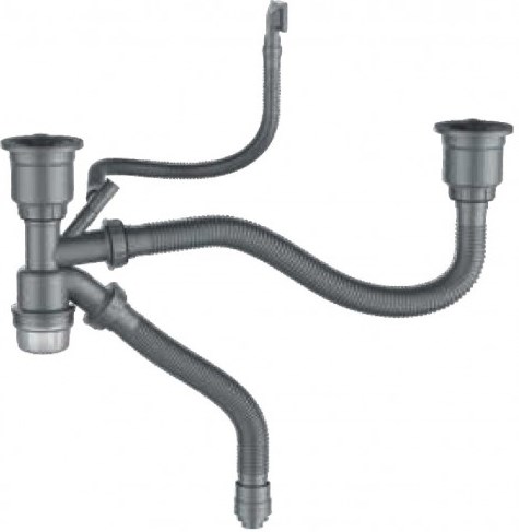 Сифон для кухонной мойки Gerhans K30601B-2 с переливом, на 2 чаши, графит. Все характеристики |