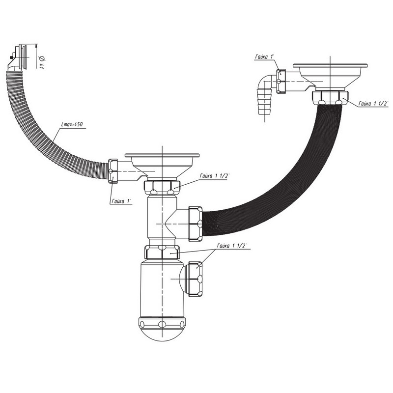 Сифон для кухонной мойки Marrbaxx Grand 341-11-24 3 1/2"*40, СН 891-11-22, двойной. Все характеристики |