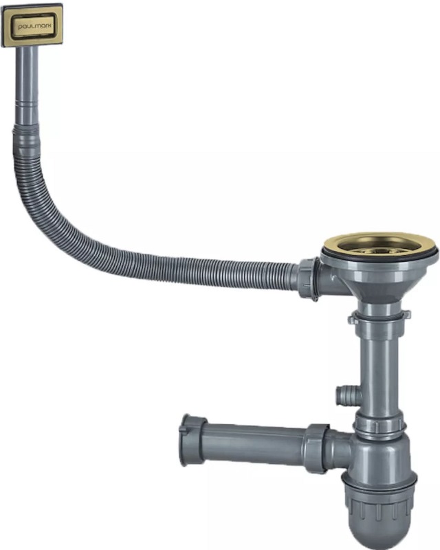 Сифон Paulmark Konz PM2022-BG для кухонных моек с прямоугольным переливом, отводом под посудомоечную/стиральную машины и жестким отводом в канализацию в цвет смесителей брашированное золото (BG).Изображение и цвет на мониторе могут отличаться от оригинала. Комплектность: