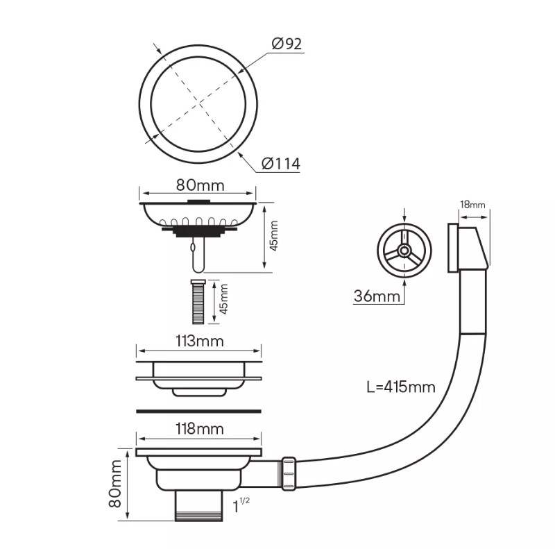 Сифон для кухонной мойки Paulmark PM6022-GM 1 1/2" с круглым переливом, вороненая сталь. Все характеристики |