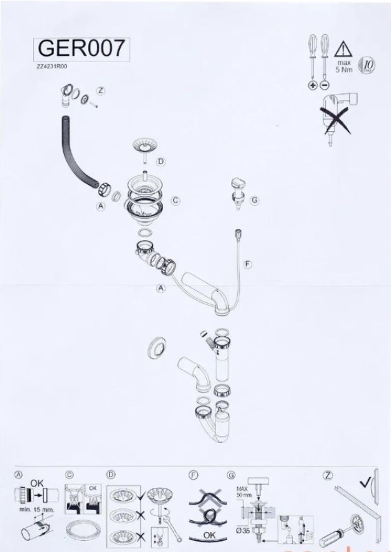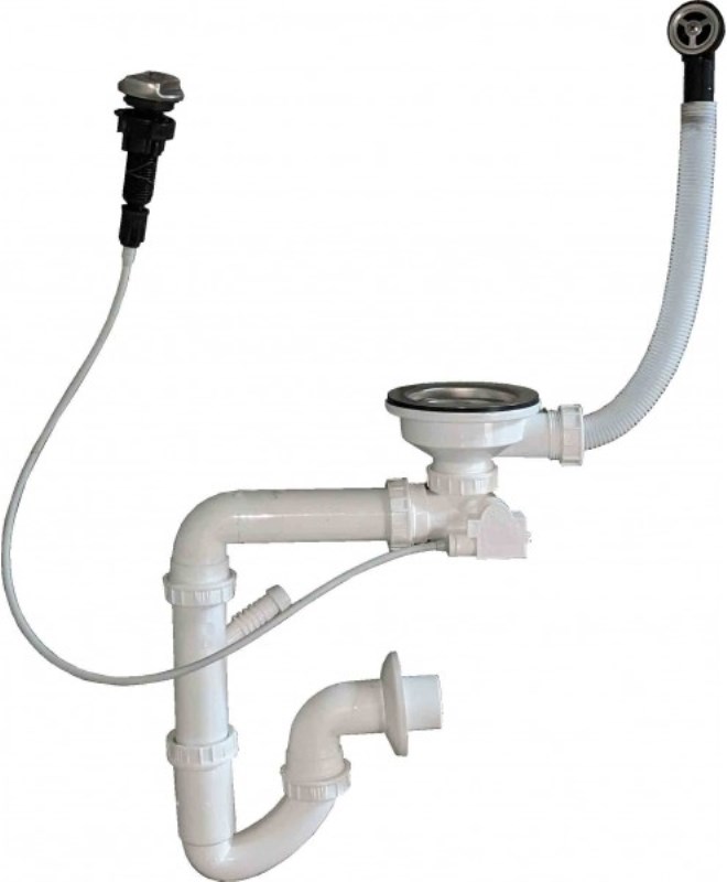 Сифон для кухонной мойки Wisent GER007 с переливом, полуавтомат, нерж.сталь. Все характеристики |