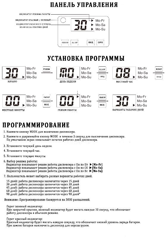 Автоматический освежитель воздуха Binele Fresher Screen PD02BB из высокопрочного пластика ABS. Периодичность распыления: каждые 7 / 15 / / 20 / 30 / 45 минут. Режимы работы: 15 / 30 / 45 / 60 / 90 дней. Предусмотрено закрытие корпуса на ключ. Изображение и цвет на мониторе могут отличаться от оригинала. Комплектность: