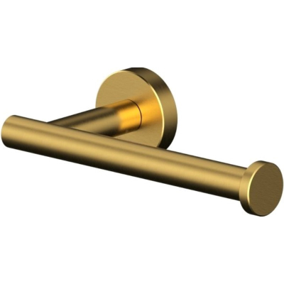 Свойства. Гладкая и матовая поверхность, цвет-брашированное золото. Долговечность и устойчивость к влажной среде в ванной. Держатель для туалетной бумаги Ergo ER2260GLB на стену.