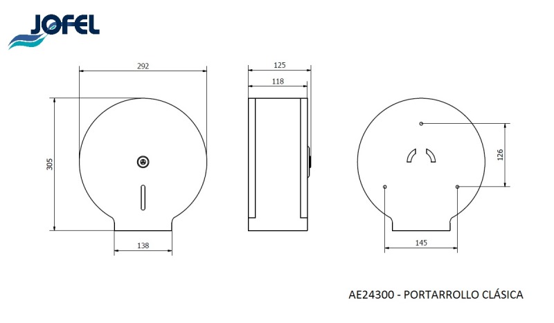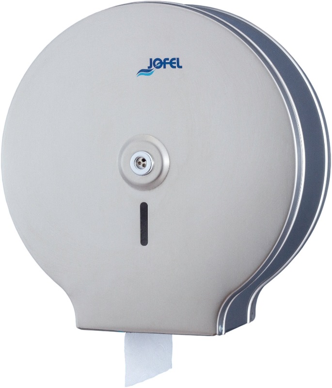 Диспенсер туалетной бумаги Jofel AE24300 из высококачественного металла.Свойства. Диспенсер для промышленных рулонов бумаги, среднего размера. Изготовлен из высококачественной сатинированной нержавеющей стали. Замок с ключом, смотровое окно для контроля расхода. Допускается использование рулонов до 400 м с максимальным диаметром 260 мм. Для посадочных втулок диаметром 45 и 55 мм. Передняя часть полностью откидывается для заправки рулона бумаги. Диспенсер туалетной бумаги Jofel AE24300, антивандальный, для общественных санузлов. Производство. Компания Jofel более 30 лет занимается профессиональным оборудованием и системами для гигиены и уборки в общественных санузлах. Основные заводы расположены в Испании и Мексике. Качество. Инновационная продукция нового поколения соответствует европейским и международным сертификатам. Изображение и цвет на мониторе могут отличаться от оригинала. Комплектность: