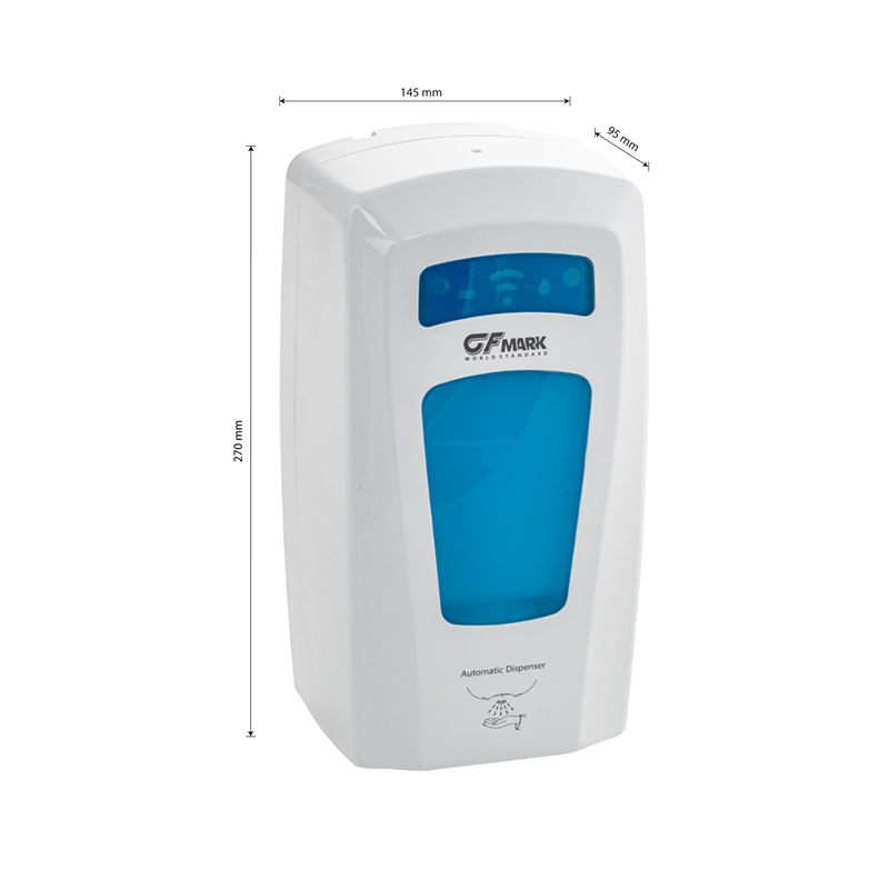 Диспенсер для антисептика GFmark 719 с распылителем из ударопрочного ABS-пластика.Свойства. Размер-27x14.5x9.5 см. Датчик объёма жидкости и уровня заряда батареек. Прозрачное окно для контроля уровня жидкости. Тип подачи жидкости: спрей. Механизм подачи с защитой от протечек. Закрывается на замок ключом. Автоматический дозатор для антисептика GFmark 719 для общественных мест и санитарно-гигиенических помещений с двойным окошком и регулировкой объёма жидкости. Изображение на мониторе может отличаться от оригинала. Комплектность:
