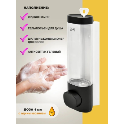 Дозатор для мыла Puff-8105Bl, 250 мл, черный. Все характеристики |