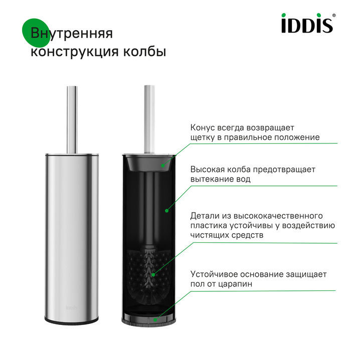 Щетка для унитаза Iddis Optima Home BRU01CCi47 с емкостью, ручкой и крышкой из нержавеющей стали.Изображение и цвет на мониторе могут отличаться от оригинала. Комплектность: