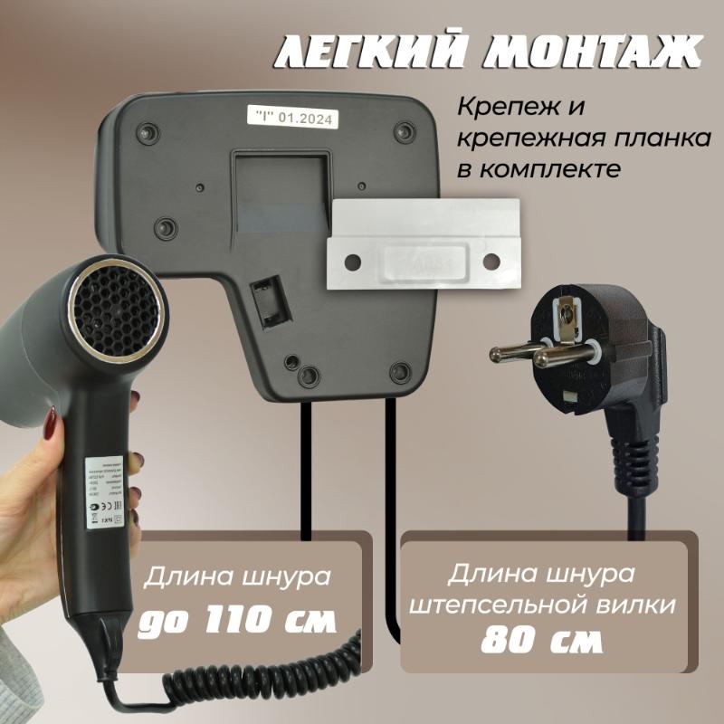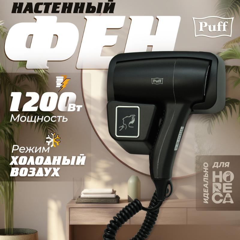 Фен для ванной Puff-1201Bl настенный, черный. Все характеристики |