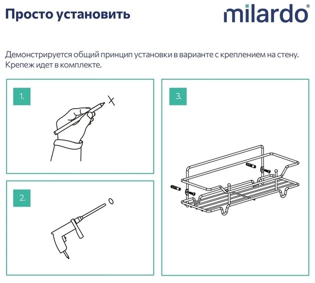 Полка Milardo Grid GRICS1CM44, 30 см, хром. Все характеристики |