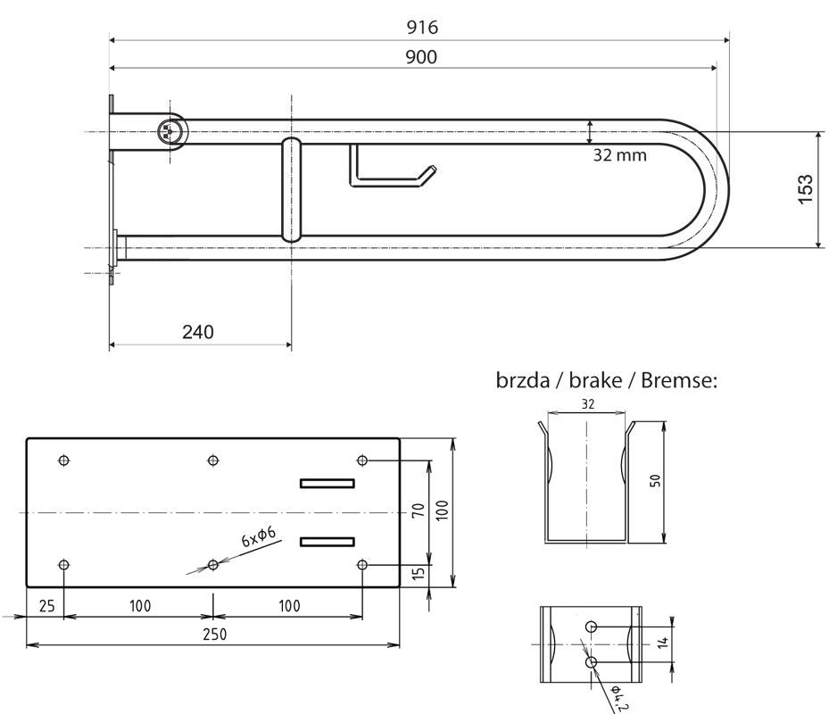 Поручень для ванной Bemeta Help 301102292, откидной, с держателем. Все характеристики |