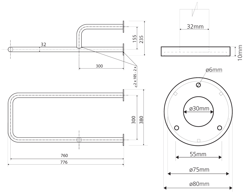 Поручень для ванной Bemeta Help 301112162, правый. Все характеристики |