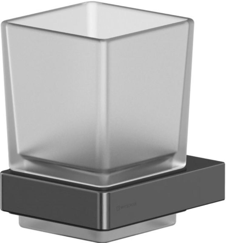 Свойства. Цвет держателя-оружейная сталь. Стакан из матового стекла. Долговечность и устойчивость к влажной среде в ванной. Стакан для зубных щеток Cubo CU2430GM для монтажа на стену.