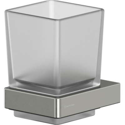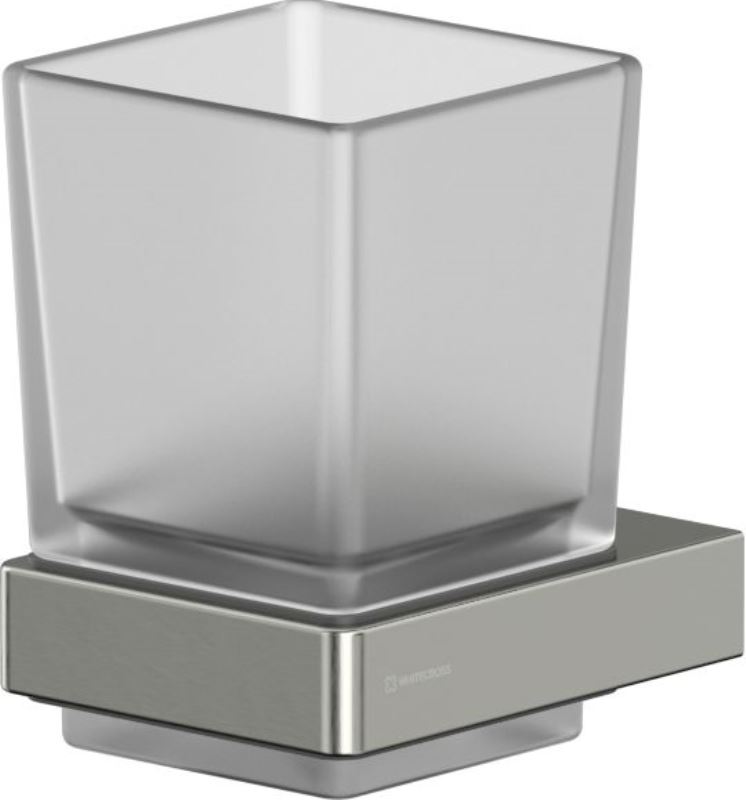Свойства. Цвет держателя-брашированный никель. Стакан из матового стекла. Долговечность и устойчивость к влажной среде в ванной. Стакан для зубных щеток Cubo CU2430NIB для монтажа на стену.