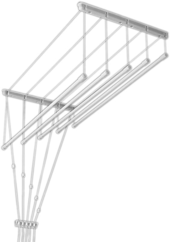 Сушилка для белья Familia потолочная 12180 из стали, покрытой специальным полимером, предотвращающим коррозию. Допустимая нагрузка да одну планку рассчитывается исходя из длины и составляет 2,0 кг белья на метр/пог. Комплектность: