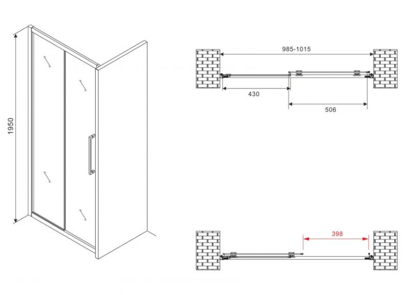 Душевая дверь Abber Schwarzer Diamant 100x195 раздвижная, мат./черн.. Все характеристики |