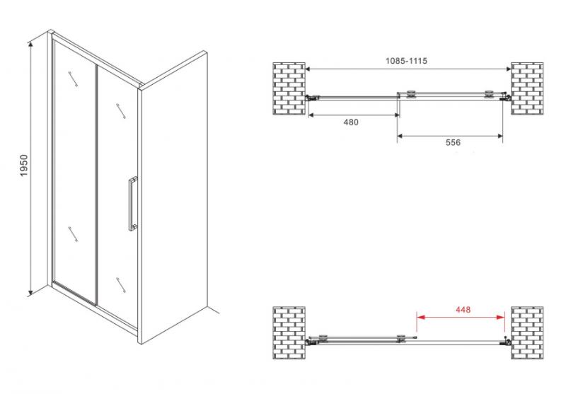 Душевая дверь Abber Schwarzer Diamant 110x195 раздвижная, мат./черн.. Все характеристики |