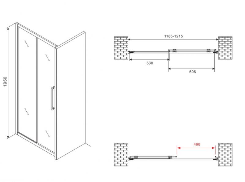 Душевая дверь Abber Schwarzer Diamant 120x195 раздвижная, мат./черн.. Все характеристики |