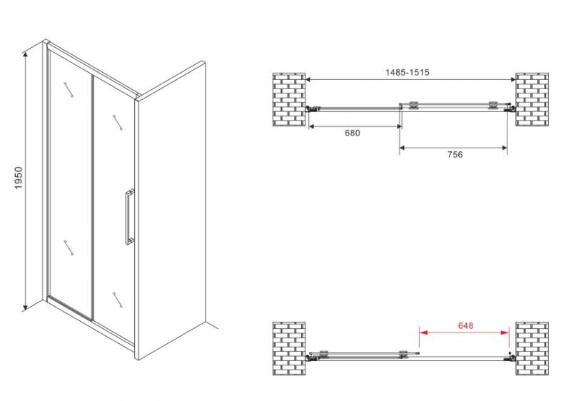 Душевая дверь Abber Schwarzer Diamant 150x195 раздвижная, мат./черн.. Все характеристики |