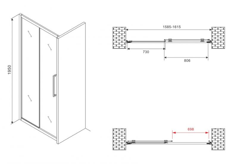 Душевая дверь Abber Schwarzer Diamant 160x195 раздвижная, мат./черн.. Все характеристики |