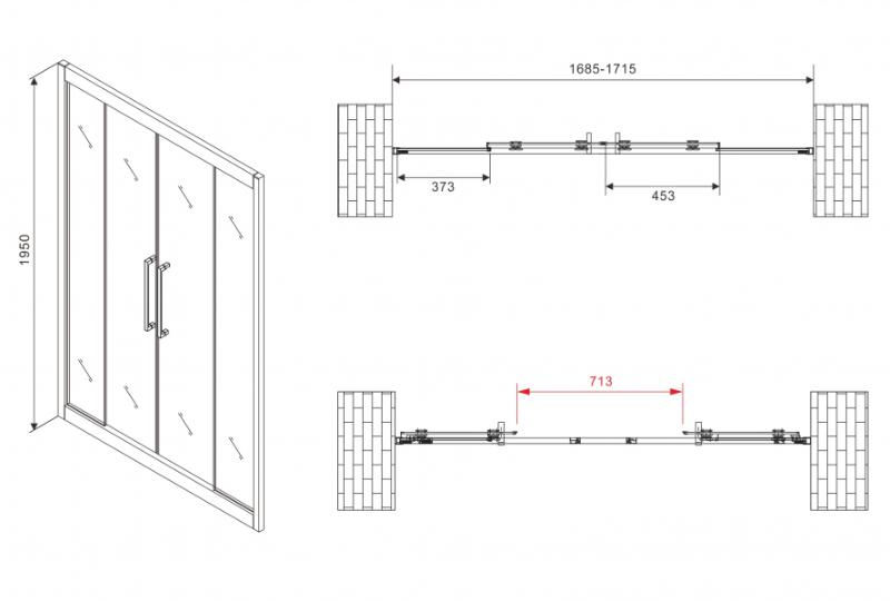 Душевая дверь Abber Schwarzer Diamant 170x195 раздвижная, прозр./хром. Все характеристики |
