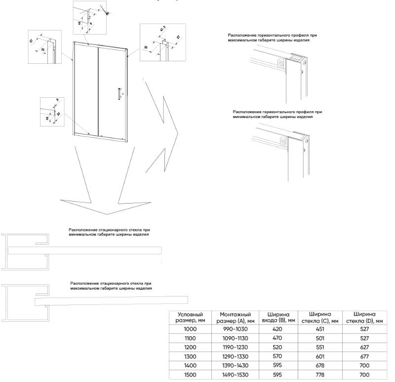 Душевая дверь Veconi VN-55 150x195, тон.\черн.. Все характеристики |