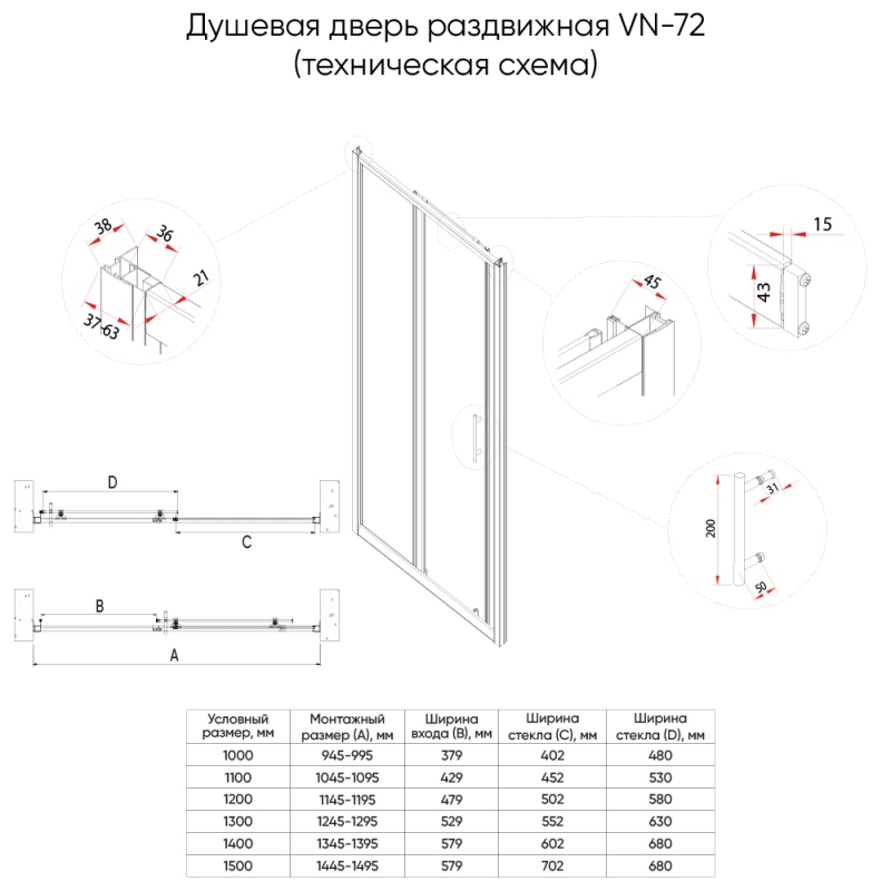 Душевая дверь Veconi VN-72 150x190, прозр.Easy Clean\хром. Все характеристики |