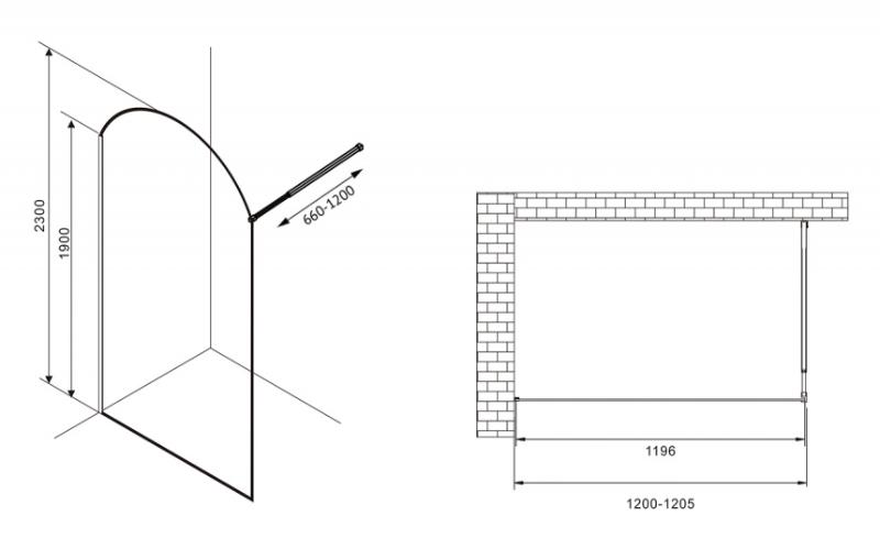 Душевая перегородка Abber Immer Offen Walk-In 120x230, прозр.\черн. AG64120BN. Все характеристики |