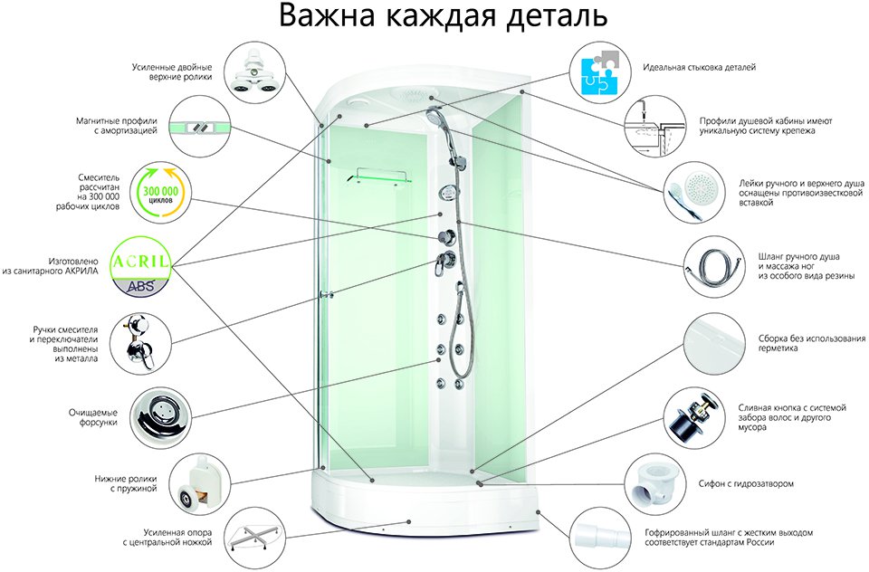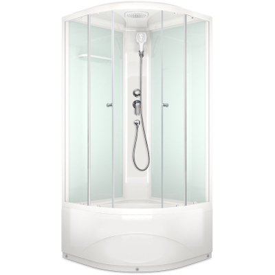 Душевая кабина Domani-Spa Delight 110 high DS01D110HWCl00 100x100 с высоким поддоном из антибактериального акрила. Свойства. Закалённое травмобезопасное стекло толщиной 4 мм. Стекла: передние-прозрачные, задние-белые. Профиль: материал-алюминий, цвет-белый. Высота поддона-43 см. Сверхпрочный поддон рассчитан на нагрузку свыше 180 кг, усилен цельной доской ДСП (16 мм). Опора с центральной ножкой позволяет равномерно распределять нагрузку, продлевая срок службы поддона. Ручки и рычаг смесителя: материал-металл, цвет-хром. Лейки: ручная и верхняя-с противоизвестковым покрытием. Душевой шланг: материал-специальная резина, защищенная от перепада температур, поверхность-гладкая для удобства очистки. Двери с двумя раздвижными секциями. Усиленные двойные верхние ролики и нижние ролики с пружиной позволяют легко снимать дверцы при необходимости. Быстрая сборка без использования силиконового герметика. Бесшумное наполнение воды. Высокая теплоизоляция. Вентиляция естественная. Душевая кабина Delight 110 high DS01D110HWCl00 100x100 см с высоким поддоном, полукруглая для пристенного монтажа. Производство. ООО «Домани-Спа» - единственный в России производитель душевых кабин и ванн, выполняющий полную цепочку этапов, начиная от эскиза, до готового продукта на заводе Домани-Спа. Качество. Все оборудование ООО «Домани-Спа» произведено в соответствии с европейскими техническими стандартами, отвечает строительным и санитарным нормам и адаптировано для эксплуатации в странах СНГ. Изображение на мониторе может отличаться от оригинала. Комплектность: