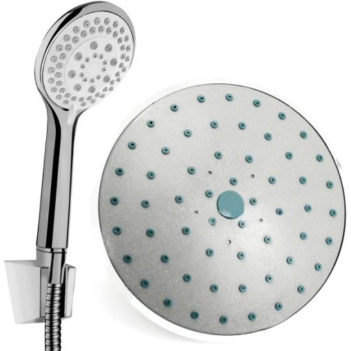 В комплекте: душевой поддон, тропический душ, ручной душ, смеситель, полка, сифон. |