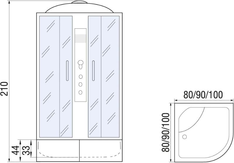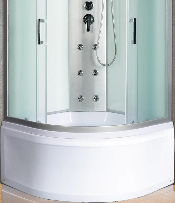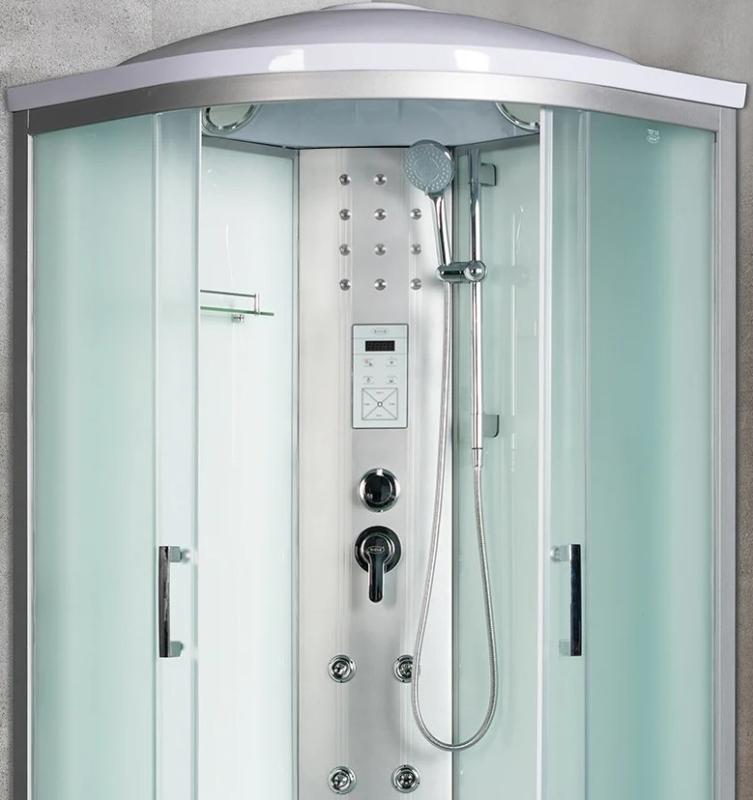 В комплекте: гидромассаж 6 форсунок, верхний свет, подсветка “лунный свет”, радио, сенсорный дисплей, полочки, зеркало, смеситель без излива, ручной душ, тропический душ, вентиляция, электропитание 12V, душевой поддон акрил с антискольжением и сиденьем, экран съемный, сифон с гидрозатвором. |