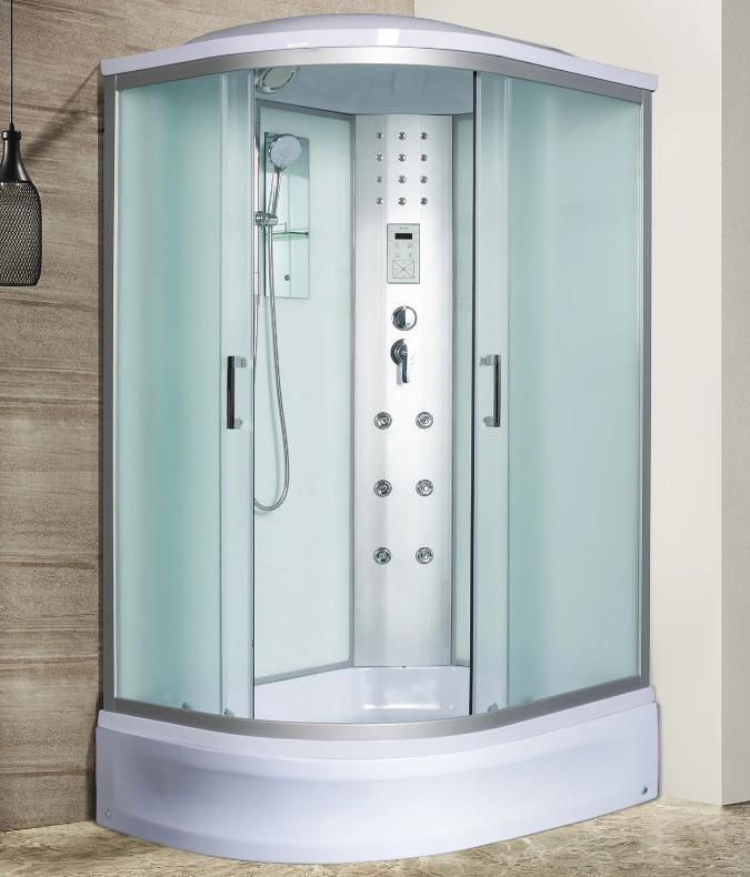 В комплекте: гидромассаж 6 форсунок, верхний свет, подсветка “лунный свет”, радио, сенсорный дисплей, полочки, зеркало, смеситель без излива, ручной душ, тропический душ, вентиляция, электропитание 12V, душевой поддон акрил с антискольжением, экран съемный, сифон с гидрозатвором. |