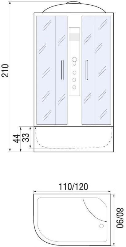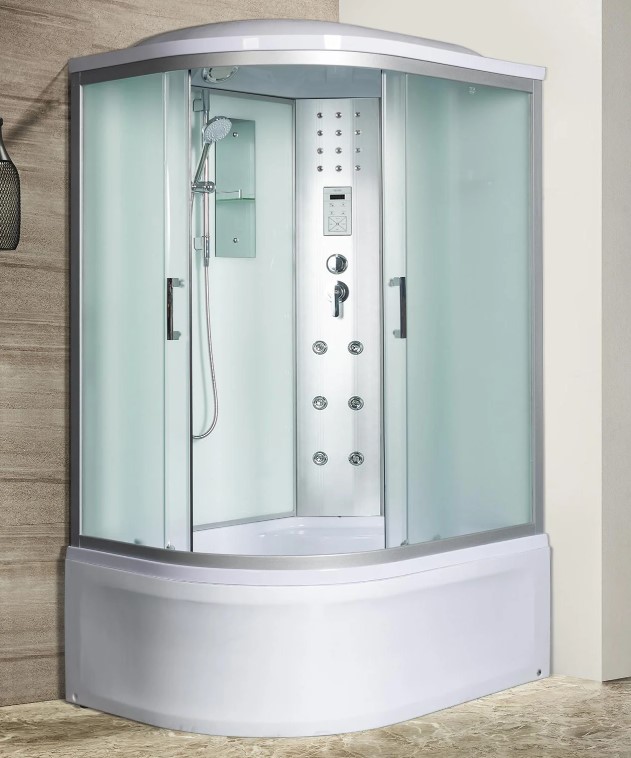 В комплекте: гидромассаж 6 форсунок, верхний свет, подсветка “лунный свет”, радио, сенсорный дисплей, полочки, зеркало, смеситель без излива, ручной душ, тропический душ, вентиляция, электропитание 12V, душевой поддон акрил с антискольжением и сиденьем, экран съемный, сифон с гидрозатвором. |