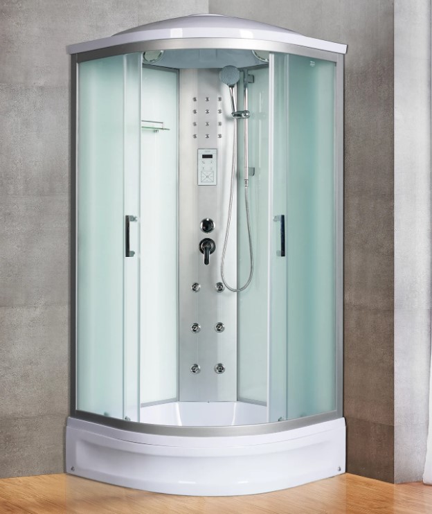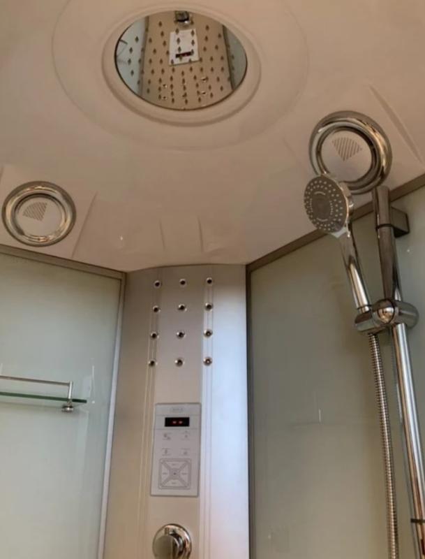 В комплекте: гидромассаж 6 форсунок, верхний свет, подсветка “лунный свет”, радио, сенсорный дисплей, полочки, зеркало, смеситель без излива, ручной душ, тропический душ, вентиляция, электропитание 12V, душевой поддон акрил с антискольжением, экран съемный, сифон с гидрозатвором. |