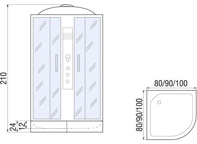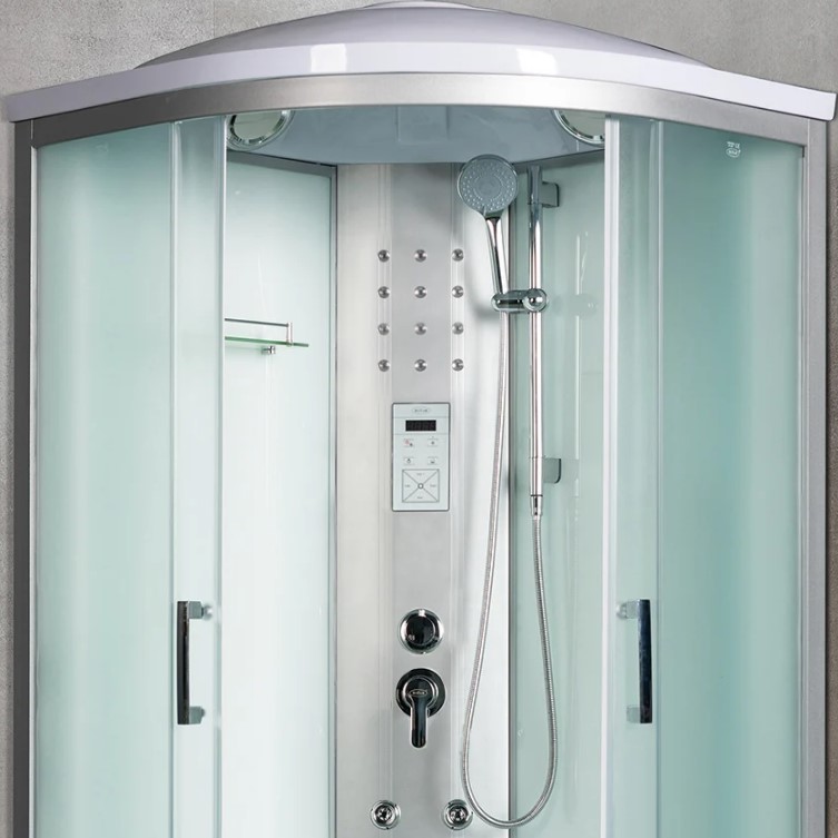 В комплекте: гидромассаж 6 форсунок, верхний свет, подсветка “лунный свет”, радио, сенсорный дисплей, полочки, зеркало, смеситель без излива, ручной душ, тропический душ, вентиляция, электропитание 12V, душевой поддон акрил с антискольжением, экран съемный, сифон с гидрозатвором. |