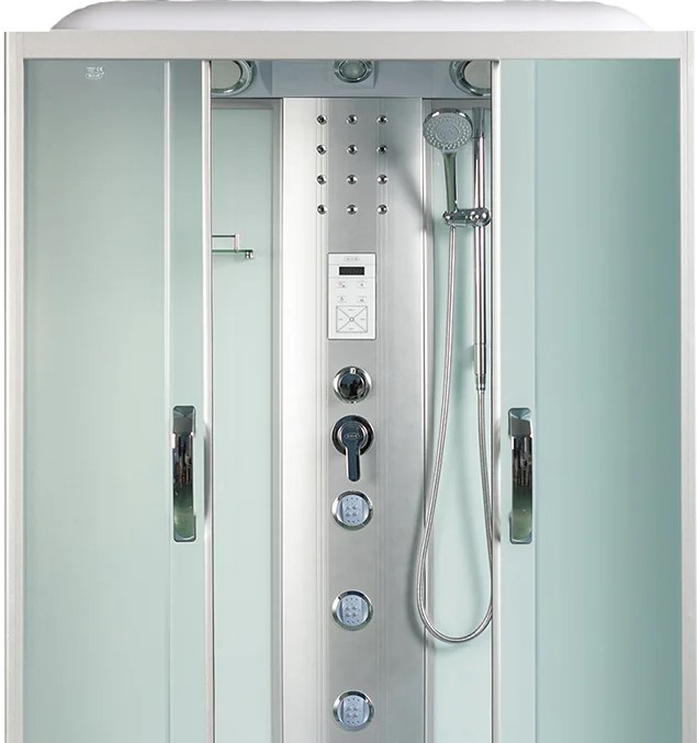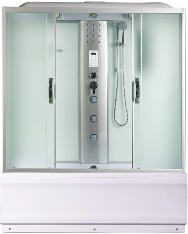 В комплекте: гидромассаж 3 форсунок, верхний свет, подсветка “лунный свет”, радио, полочки, зеркало, смеситель, ручной душ, тропический душ, вентиляция, электропитание 12V, душевой поддон акрил с антискольжением, экран съемный, сифон с гидрозатвором. |
