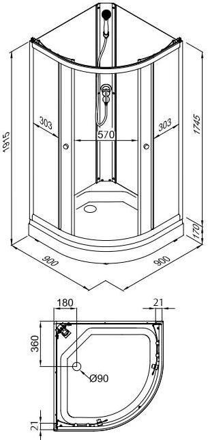 Душевая кабина Triton Лайт А ДН1 90x90 без крыши, Градиент, Щ0000070695. Все характеристики |