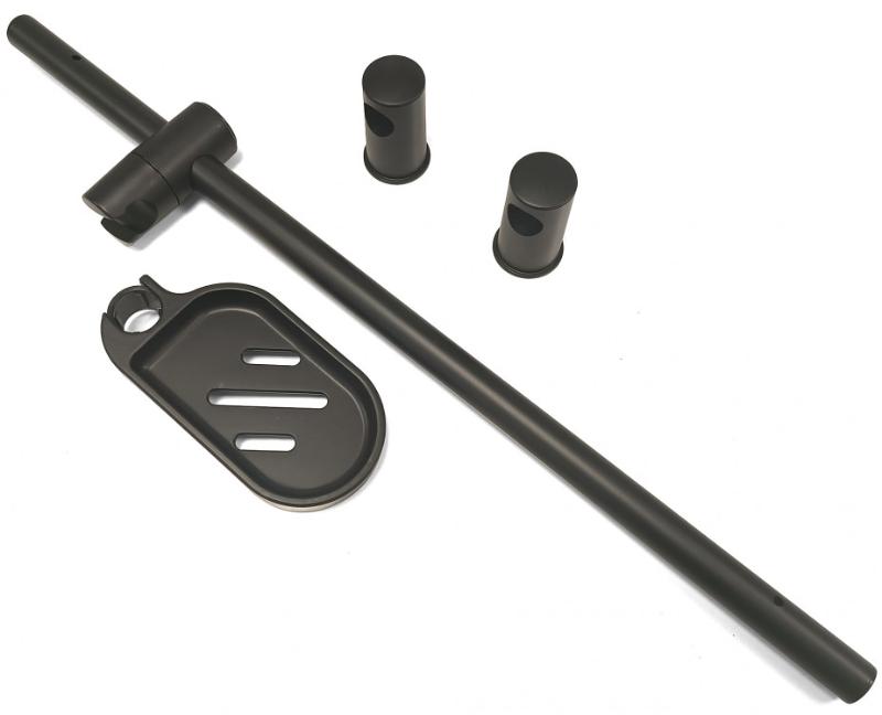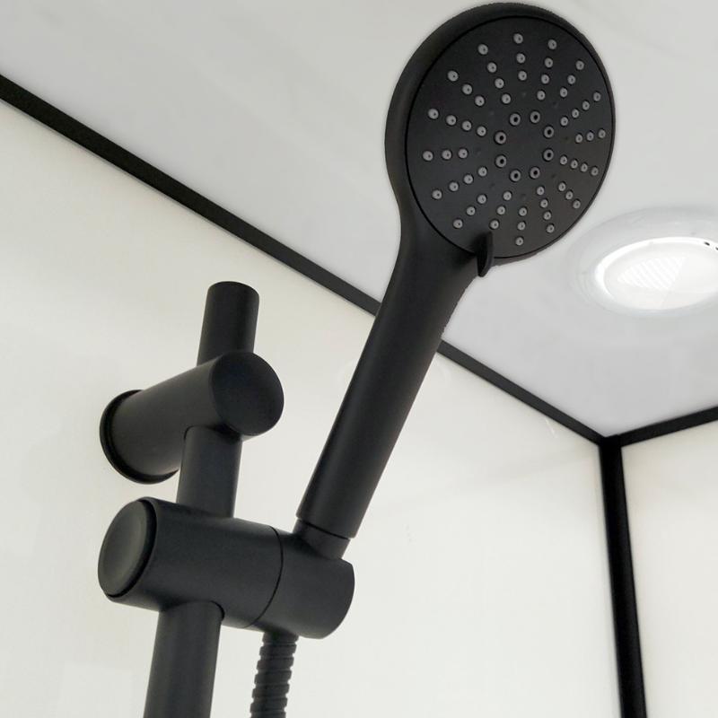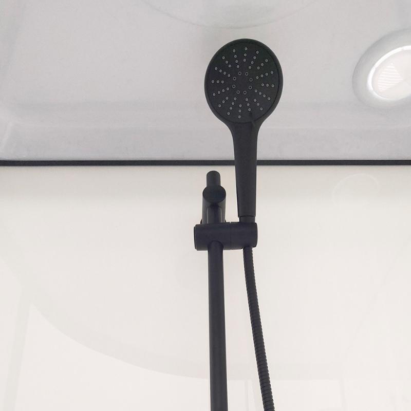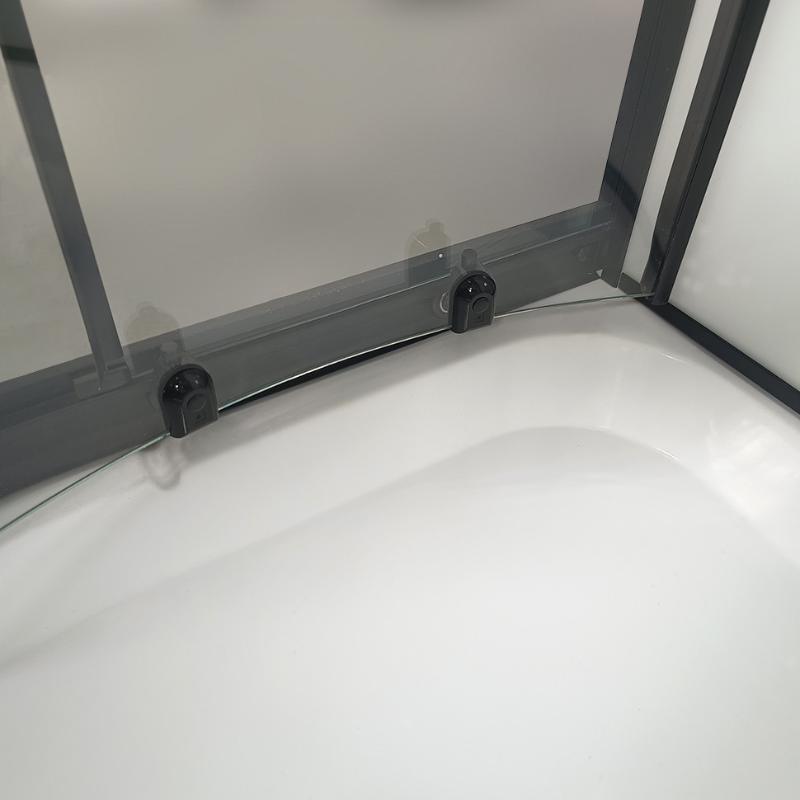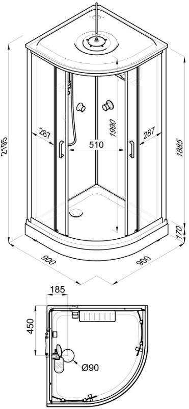В комплекте: душевой поддон с панелью и каркасом, душевой гарнитур, верхний душ, полка с тремя крючками, сифон без гофры. |