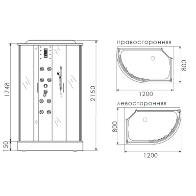 Душевая кабина Erlit ER4512PR-C3 120x80, гидромассажная, правая. Все характеристики |