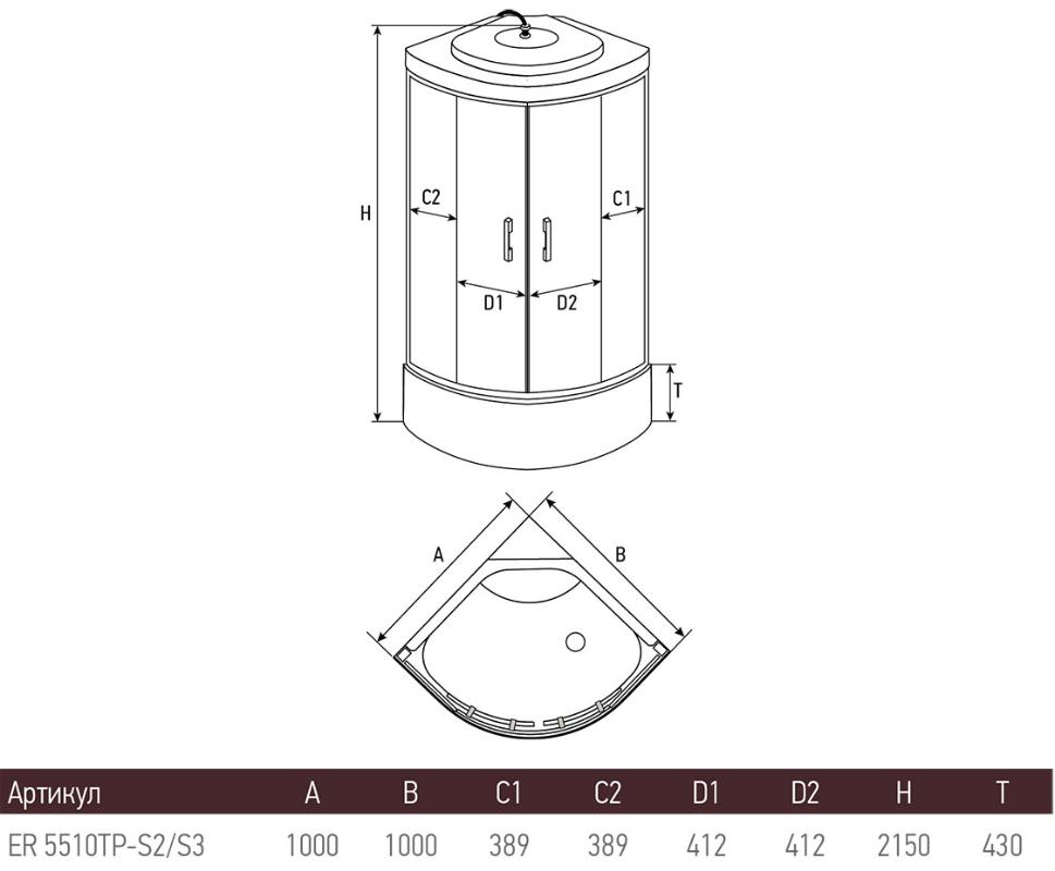 Душевая кабина Erlit ER5510TP-S2 100x100, гидромассажная. Все характеристики |