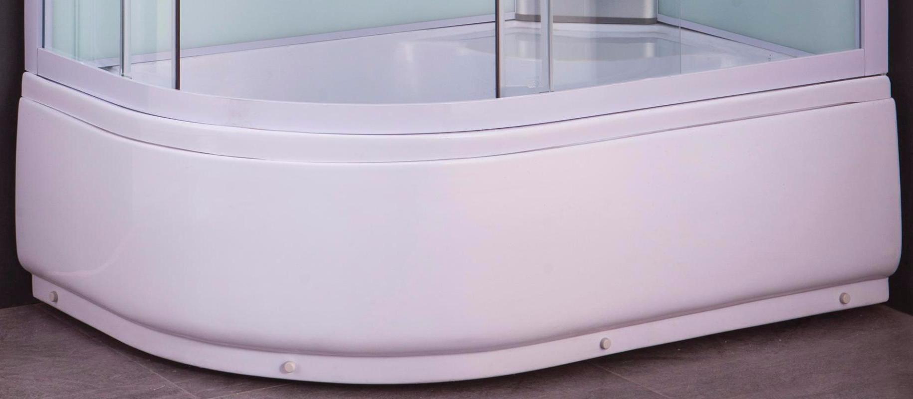 В комплекте: трехрежимный латунный смеситель, однорежимный ручной душ с держателем, тропический душ, полочка, зеркало, освещение, FM-радио, вентиляция, сифон с гофрой и гидрозатвором. |