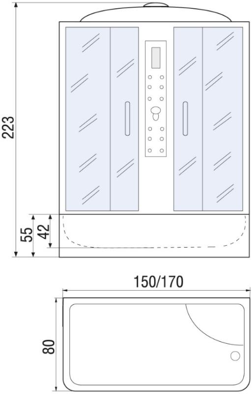 Душевая кабина River Dunay 150x80 ТН с ванной, гидромассажная, тон.\черн.\хром мат.. Все характеристики |