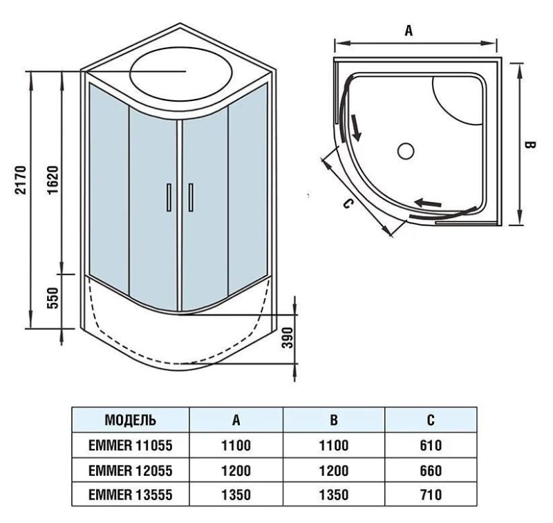 Душевая кабина WeltWasser WW500 Emmer 13555-2 135x135, с ванной, прозр./хром. Все характеристики |