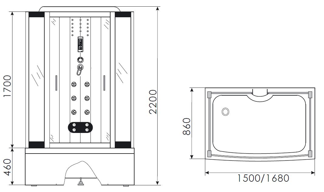 Душевая кабина Erlit ER4117T-C7 165x85, гидромассажная с ванной. Все характеристики |